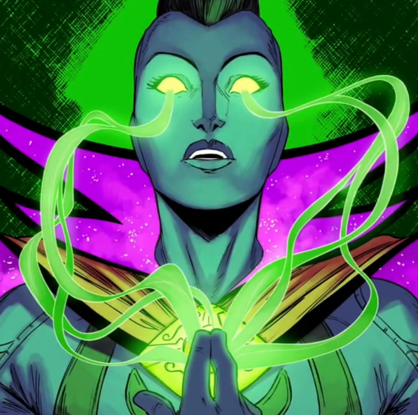 In writing the comic below, I framed it as a fable told to young sorcerers in the Temple as a way to explain the Ancient one in this universe, and the creation of the Temple of Vishanti. The Poem uses varying rhyme schemes for each stanza and esoteric language to represent the Temple being a nexus of multiple (often conflicting) realities, and the Ancient One being an amalgam of every Ancient One everywhere forever. I wanted readers to feel caught between each stanza, never quite settling into a predictable rhythm - the words as the ground shifting beneath their feet.